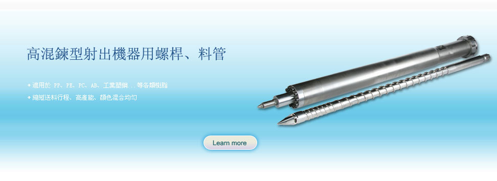 我们所采用的特殊钢材,素材经热处理以及严谨的加工流程,供应经过氮化、镀硬铬、双合金属等高品质的螺杆和料管,其产品具有耐磨损、耐腐蚀、送料快速、顺畅,混合均匀、寿命更长等优点,加上产品皆由最新精密加工母机制造,在严格的品管以及追踪下来为客户提供,更精密、更耐用、高品质的塑胶机器主要零配件。