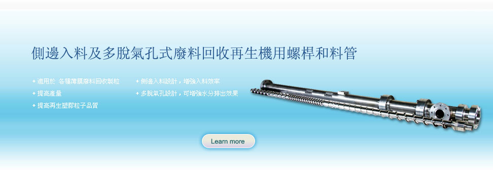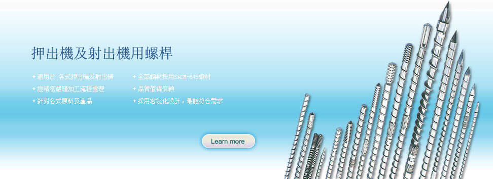 我們所採用的特殊鋼材,素材經熱處理以及嚴謹的加工流程,供應經過氮化、鍍硬鉻、雙合金屬等高品質的螺桿和料管,其產品具有耐磨損、耐腐蝕、送料快速、順暢,混合均勻、壽命更長等優點,加上產品皆由最新精密加工母機製造,在嚴格的品管以及追蹤下來為客戶提供,更精密、更耐用、高品質的塑膠機器主要零配件。